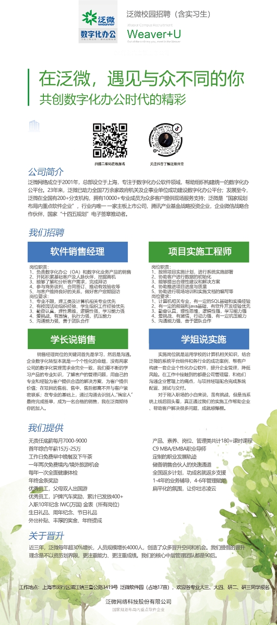 【2025招聘】泛微网络科技股份有限公司校园招聘