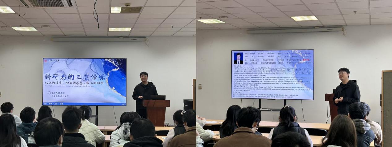 11月25日,太阳集团tyc151cc在致远楼304举办“研途青年说”学长沙龙——科研经验分享活动,邀请优秀博士生陈思翰(2025届毕业生)分享科研经验。陈思翰的研究方向包括智能配电网与微电网优化运行、电力系统韧性提升技术等,已在国际知名期刊发表多篇论文,并参与国家自然科学基金项目。他从心态、思维、行动三个维度展开分享,强调了调整心态、培养科研思维和高效行动的重要性,为同学们提供了宝贵的科研经验。“研途青年说”学长沙龙由学部研究生会主办,旨在通过优秀朋辈的分享,满足研究生的学术需求,营造良好的校园学术环境。