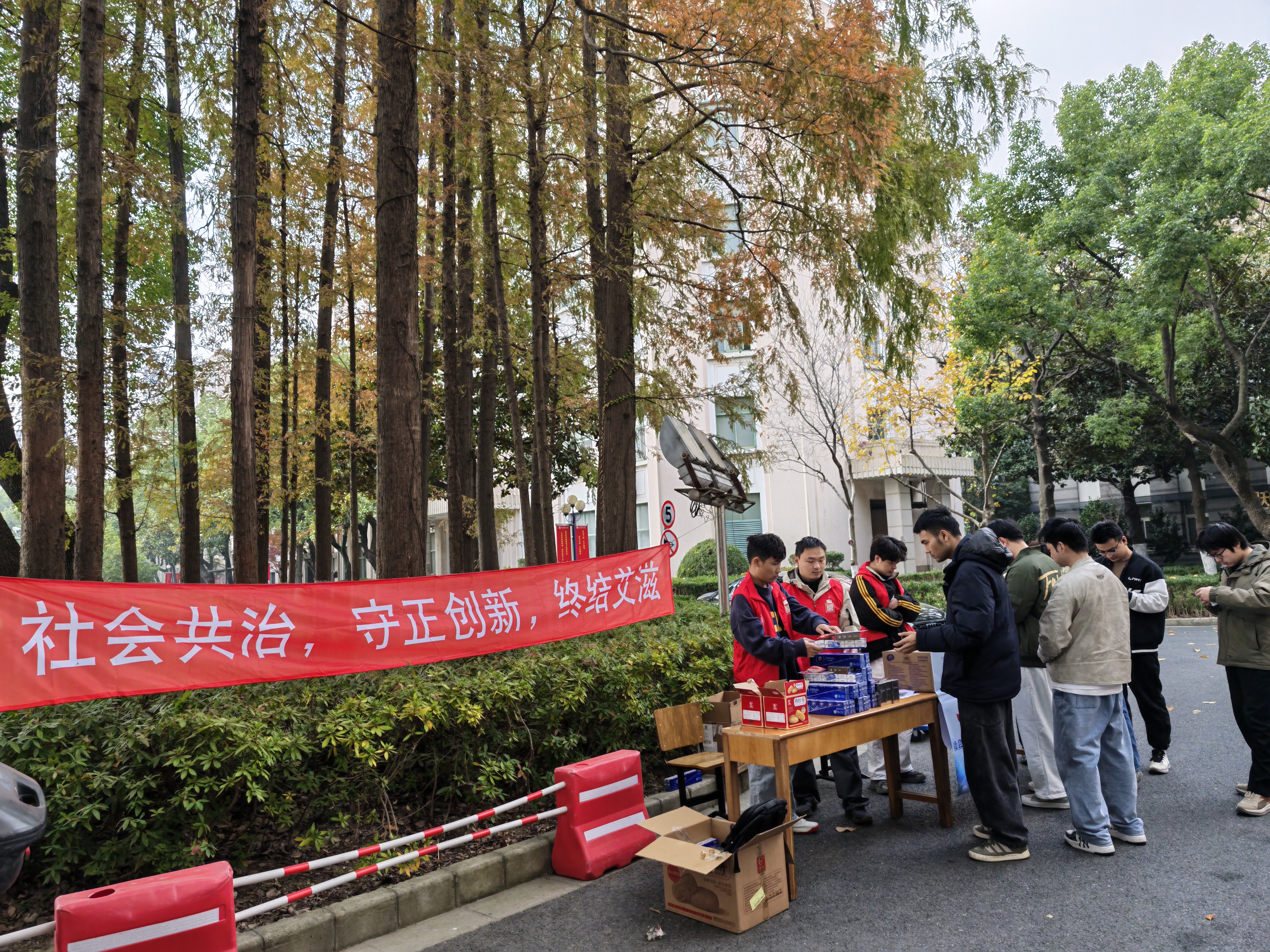 为提升宣传实效,推动防艾知识深入人心,12月1日,太阳集团tyc151cc在杨浦校区主干道设置防艾宣传展台,开展“向阳而行,防艾同心”主题线下活动。现场布置主题展台,宣传横幅,并发放防艾知识手册、防艾纪念品等200余份。通过“签名承诺墙”、“防艾知识闯关”、“阳光寄语”等互动环节,多元化地引导同学们学习防艾要点,传递对艾滋病患者的包容与关怀,彰显青春担当。