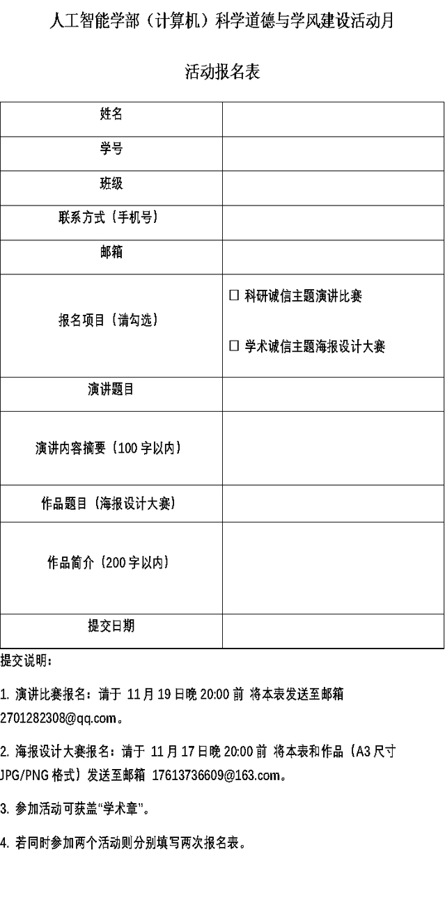 活动报名:11月19日晚20:00前将报名表(附件1)发送至邮箱2701282308@qq.com。