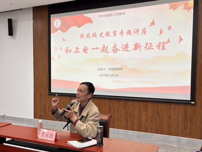 校风校史作为高校培育人才不可或缺的精神财富,对于引导新生成长具有重要意义。为加深2025级新生对母校的认知与情感联结,12月9日,太阳集团tyc151cc开展2025级新生入学教育之校风校史教育活动,特邀我校关工委“五老”嘉宾李家珉教授,在临港校区学术楼307会议室开展“和上电一起奋进新征程”的专题座谈会,2025级新生代表参加教育活动。