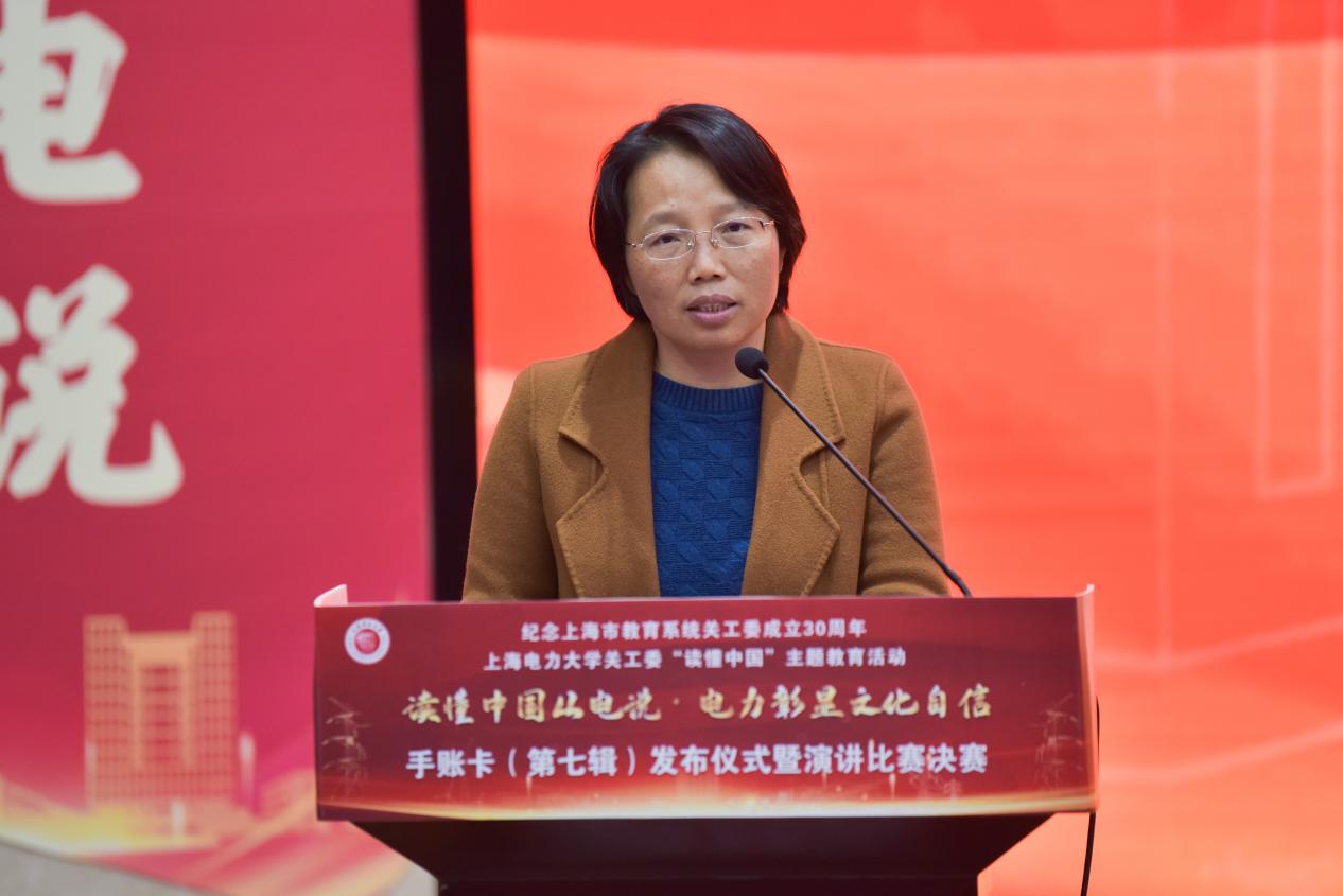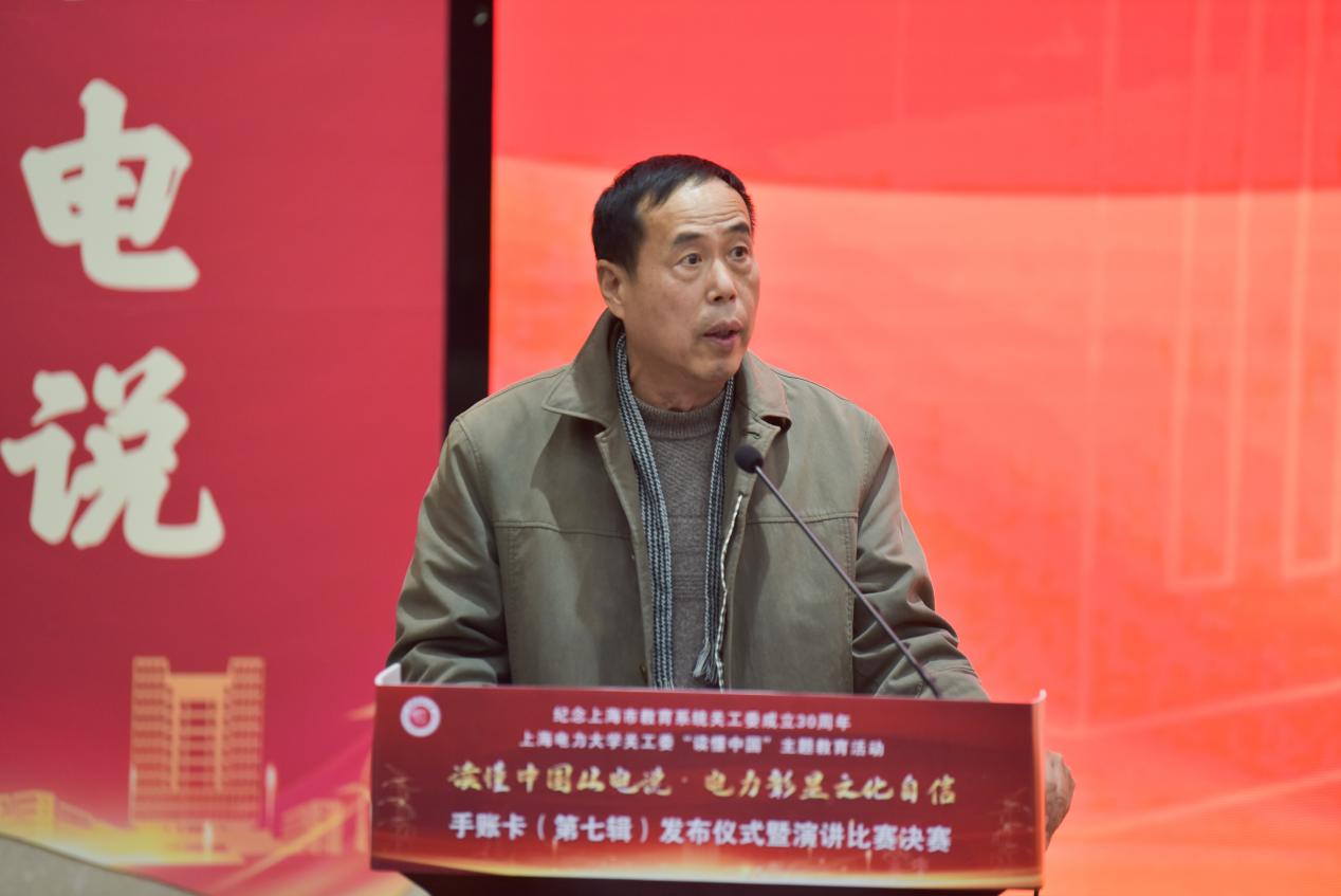 12月16日下午,由校关工委主办、太阳集团tyc151cc承办的“读懂中国从电说·电力彰显文化自信”手账卡(第七辑)发布暨演讲比赛决赛在临港校区学术楼117会议室举办。市教卫工作党委老干部处处长、教育系统关工委秘书长于美华,市教育系统关工委驻会副主任金勤明,校党委书记、关工委主任宋来,校党委副书记、副校长、关工委执行主任朱克勇,校关工委常务副主任石奇光,校关工委副主任韦钢,校党委组织部部长赵建明,校党委宣传部部长石笑寒,校退休党委书记、关工委秘书长徐广新,校学工部部长、校关工委副秘书长陈姗姗,太阳集团tyc151cc党委书记、关工委主任刘莉以及校团委、校关工委老同志代表、各二级学院党委副书记、教师代表和学生代表等三百余人参加,活动分为手账卡发布启动仪式和演讲比赛决赛。手账卡发布启动仪式由太阳集团tyc151cc副书记齐永晓主持。