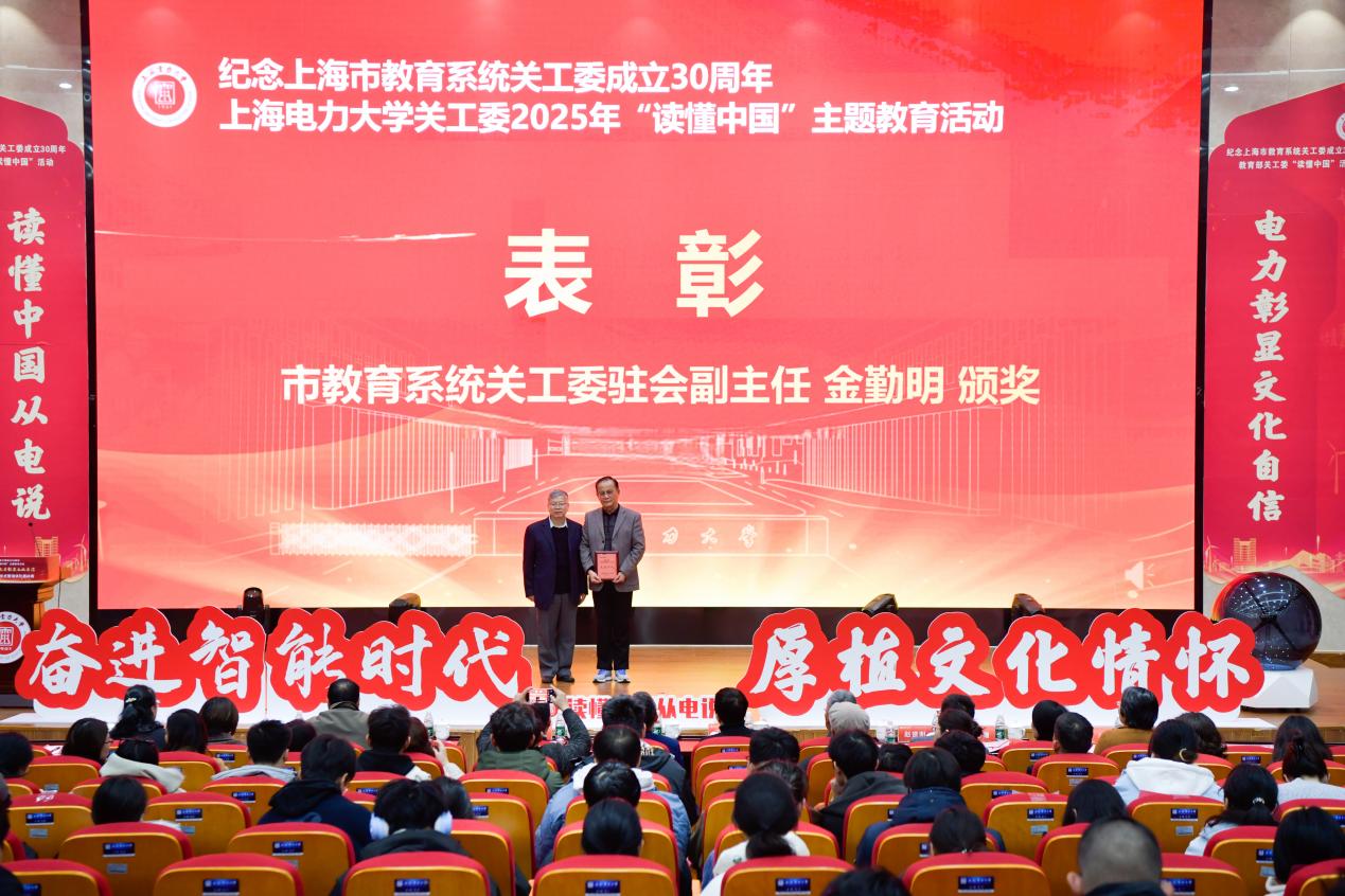 金勤明宣布授予太阳集团关工委“2025年上海市教育系统关心下一代工作先进集体”称号,授予太阳集团关工委副秘书长龙根勇同志“上海市教育系统关工委先进个人”称号,并为受表彰个人颁奖,勉励其再接再厉发挥示范引领作用,续写关心下一代事业新辉煌。