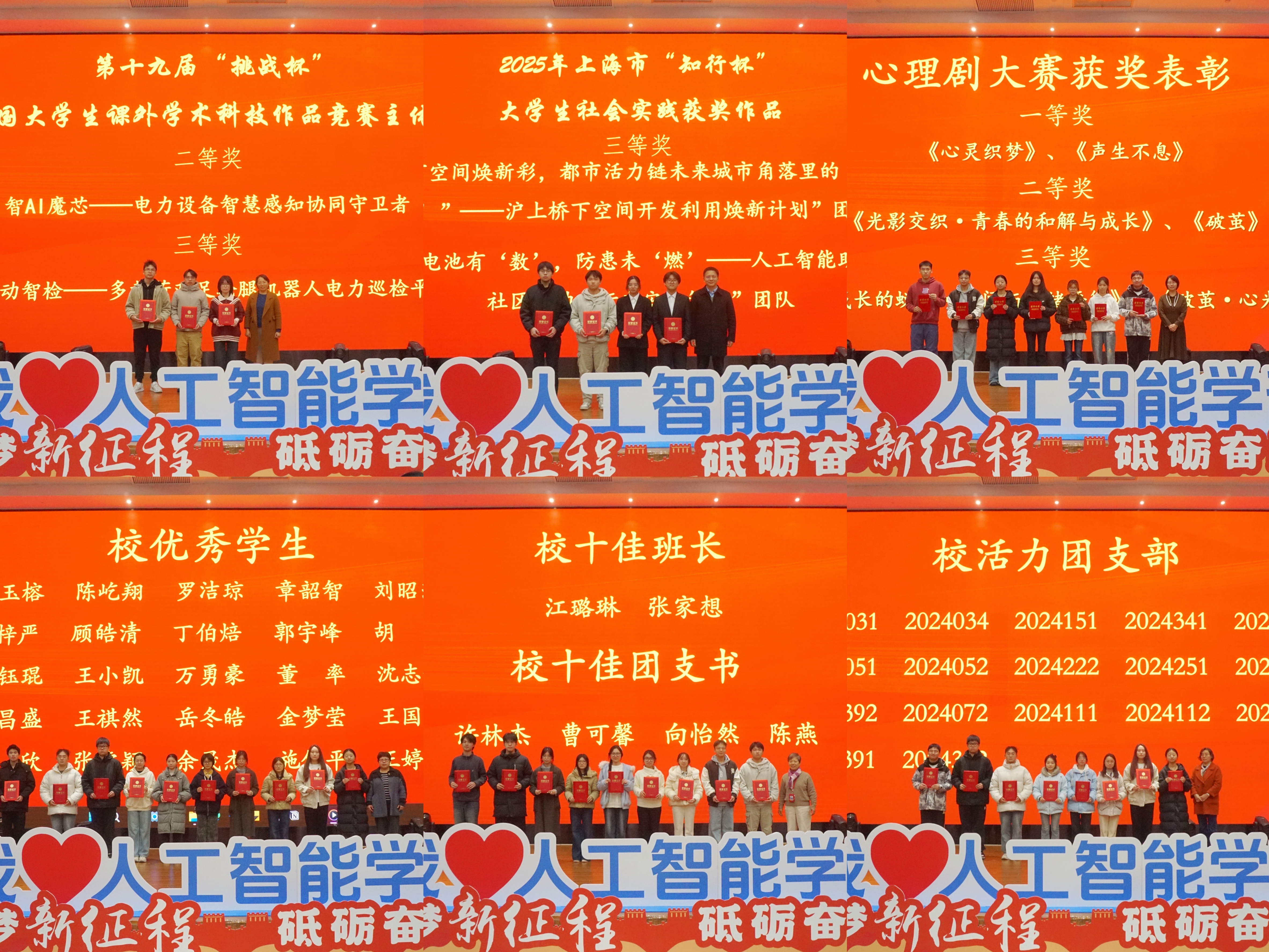 本次大会分为“潜心求知,强国有我”、“勇于追梦,砥砺前行”和“智启未来,青春担当”三个篇章。本次表彰涵盖多个奖项,包括国家级挑战杯科创竞赛及上海市“知行杯”大学生社会实践以及大学生职业规划大赛、心理情景剧大赛、优秀学生、优秀学生干部、优秀团干部、校五四红旗团支部、先进班集体、文明班级等表现优秀的先进和个人。一份份荣誉的背后,是同学们的勤勉耕耘与不懈拼搏,是班级与寝室的团结协作与共同进步,充分彰显学部在班级建设、学风培育、宿舍文化塑造及心理健康教育等方面的丰硕成果,为营造和谐向上、互助共进的集体氛围注入动力。