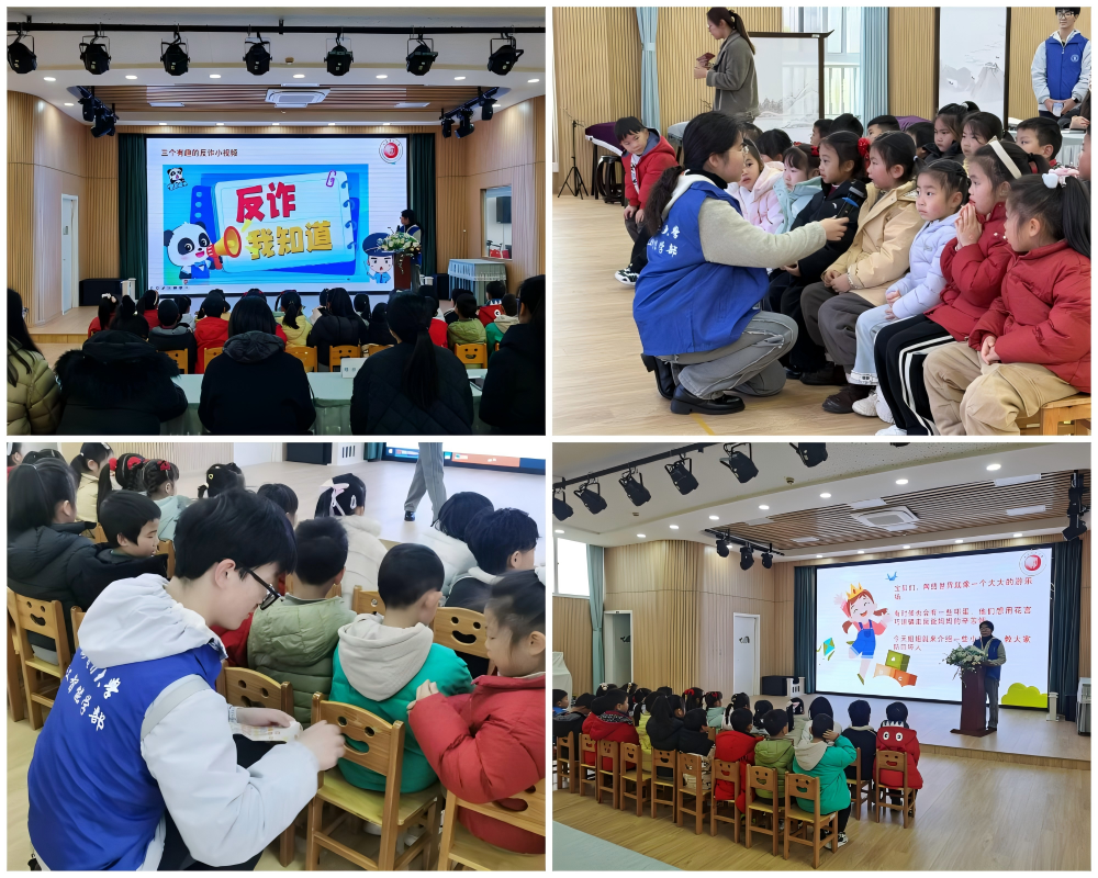 签约仪式后,太阳集团“E路领航”学生志愿者团队为幼儿园大班的小朋友们带来了一场以“安全防诈”为主题的AI互动小课堂。志愿者们巧妙结合人工智能技术应用场景,用动画视频、智能语音互动等形式,生动讲解如何识别“假冒熟人电话”“虚假退款链接”等常见诈骗手段,引导孩子们在趣味体验中提升安全意识和科学素养。
