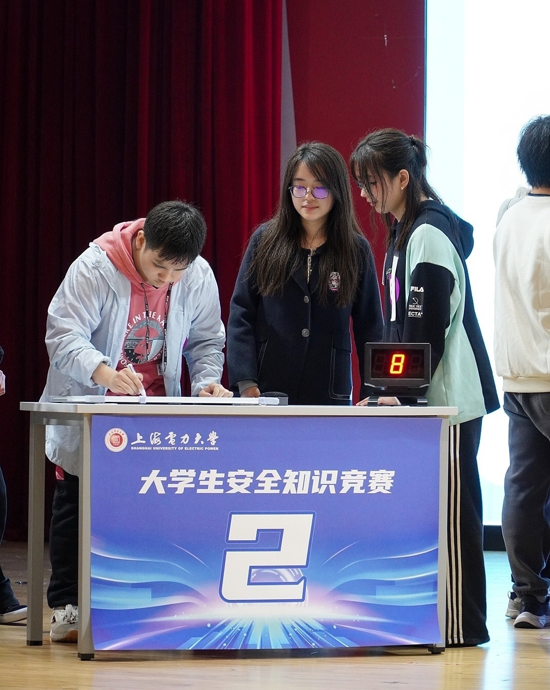 理论竞答比赛环节中,参赛队伍依次在“有问必答”“争分夺秒”“一站到底”三个项目中展开角逐,他们以扎实的知识储备、严谨的答题态度,全面展现了对国家安全总体内涵、法律法规、风险防范等知识的熟练掌握,随着竞赛的开展,场内气氛热烈,最终2025372班代表队成功晋级校赛。